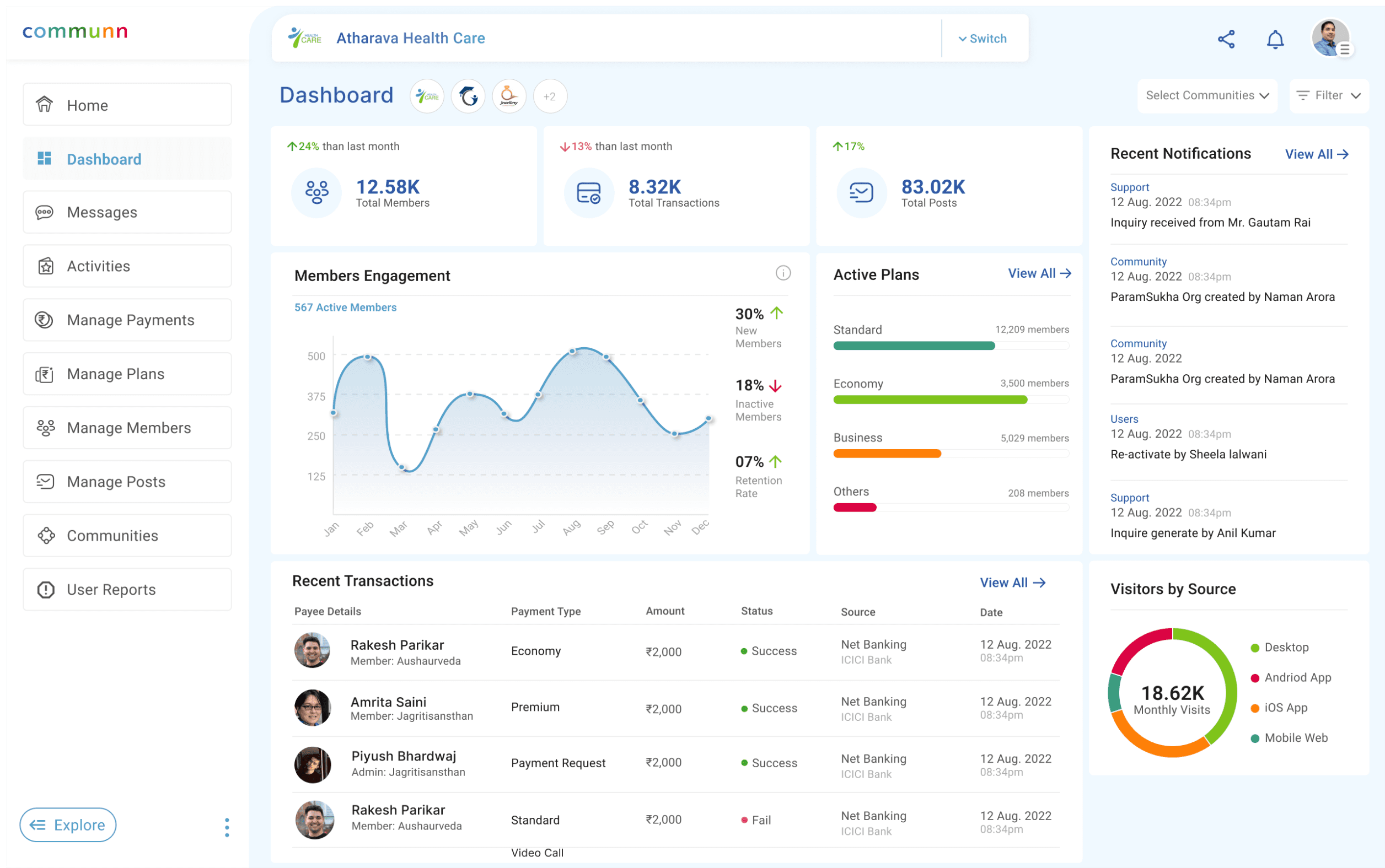 Members managed on the platform.
